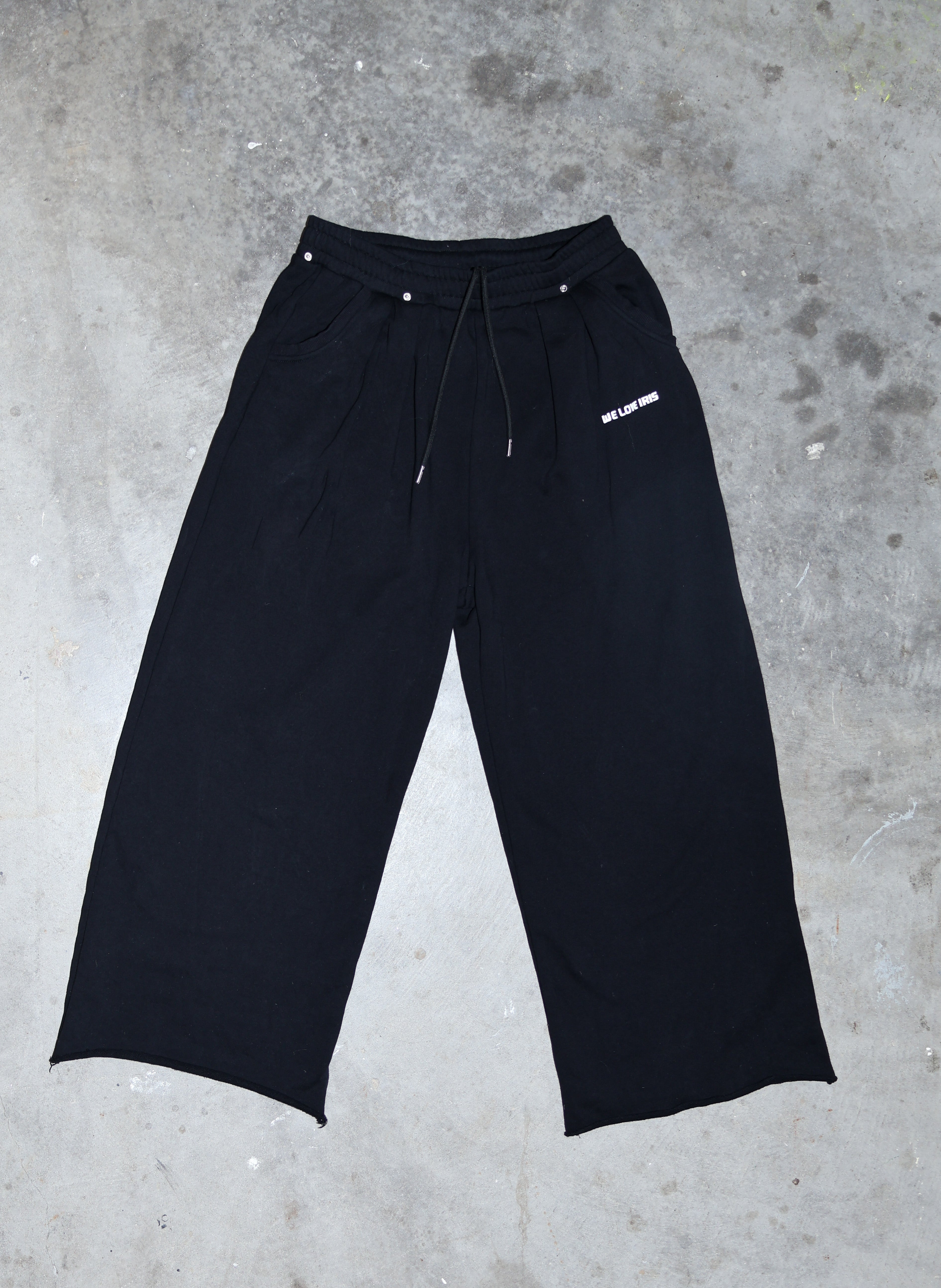 These sweatpants can be dressed up with the fur or have the fur removed for a more relaxed look. Wide-leg fit, so it appears baggy.