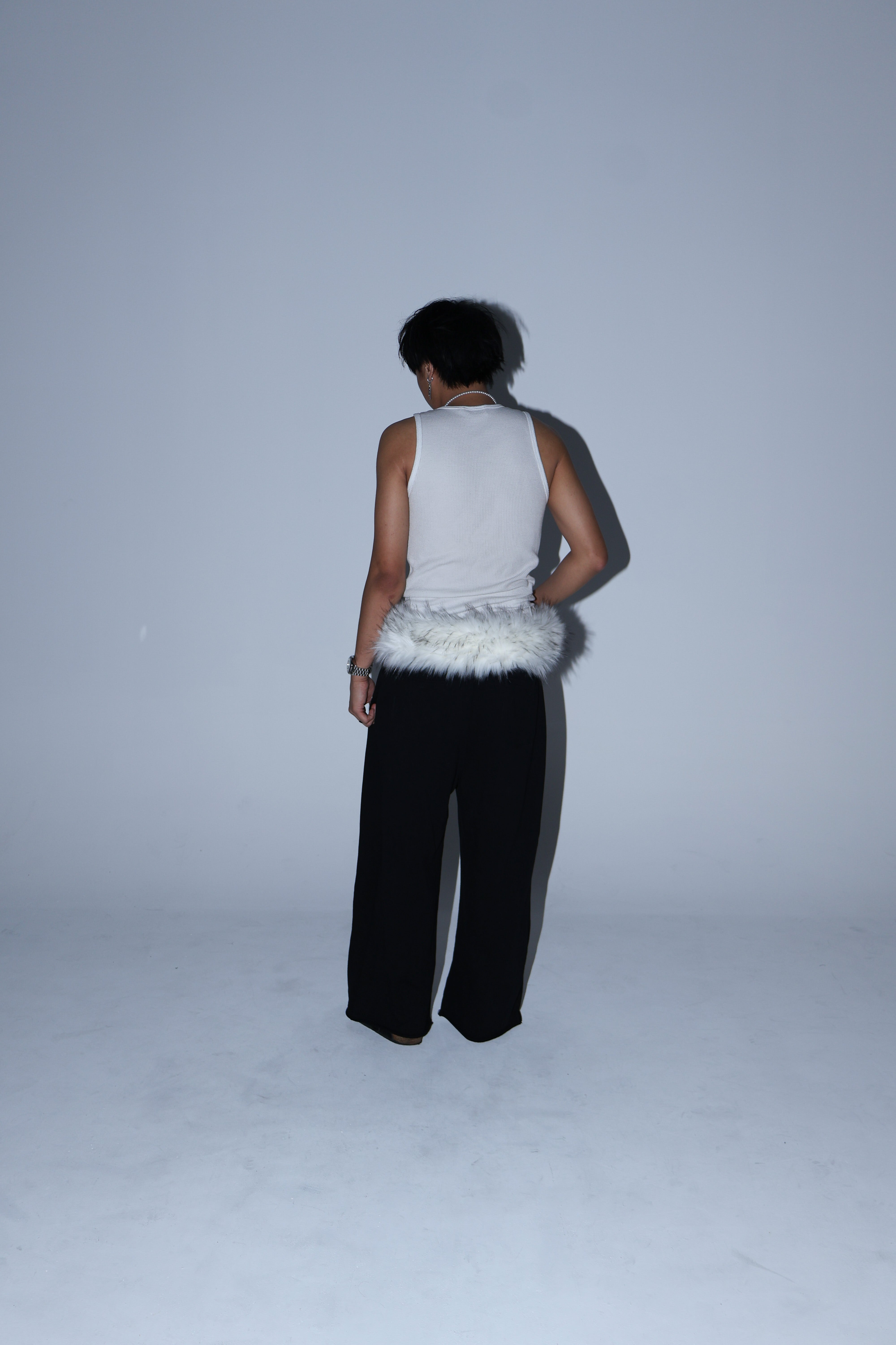 black detachable fur sweatpants